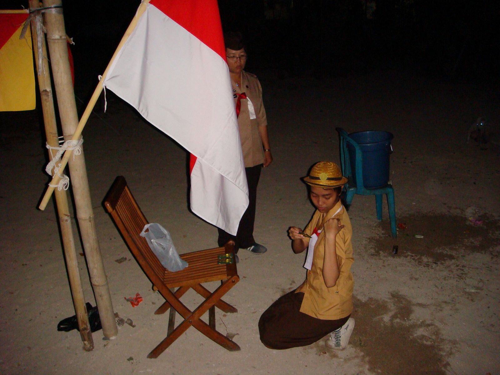 | kumpulkan bahan buat acara api unggun tar... malam |